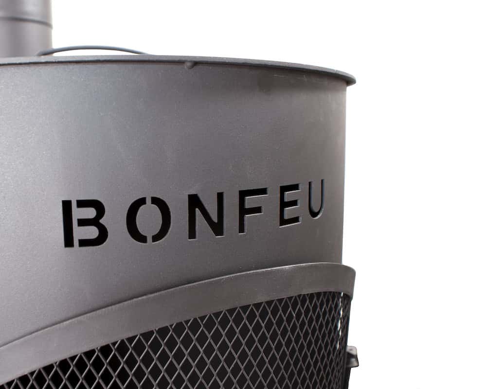 Auf der Vorderseite ist das BonFeu-Logo dekorativ ausgeschnitten – die Flammen sind sichtbar.