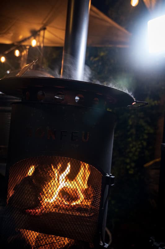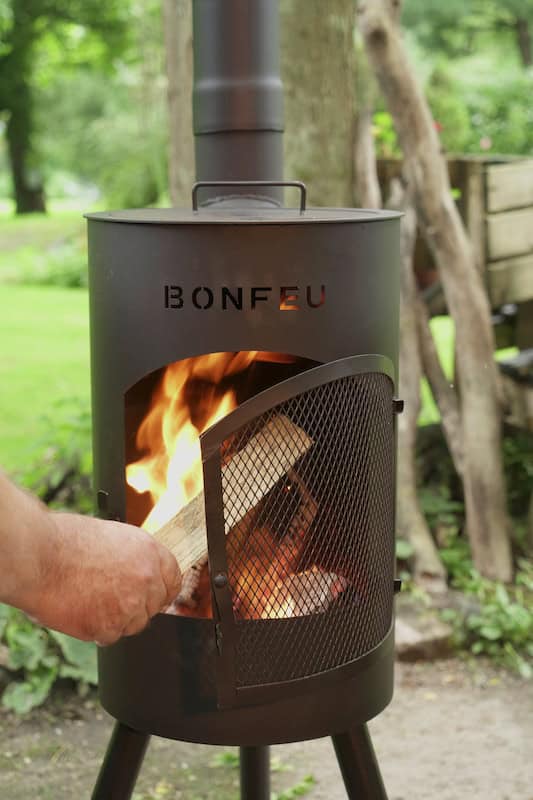 Auf der Vorderseite ist das BonFeu-Logo dekorativ ausgeschnitten – die Flammen sind sichtbar.