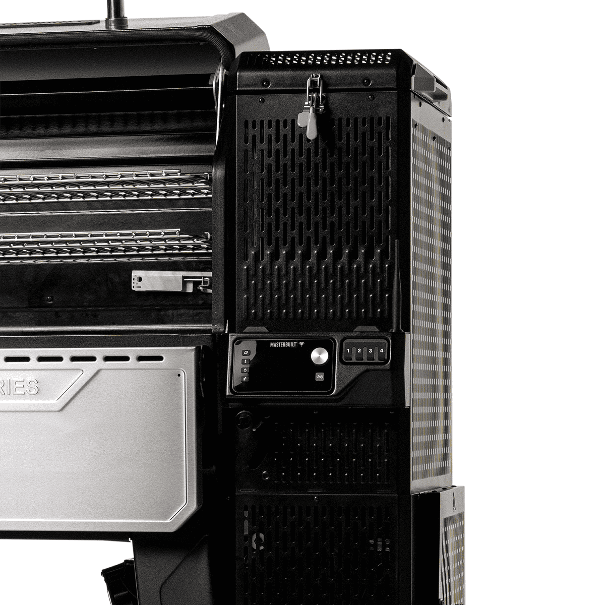 - Fortschrittliches digitales Bedienfeld zum Einstellen der Gartemperatur, Anzeigen von Sitzungsdiagrammen und Überwachen Ihrer Fleischtemperaturfühler Stellen Sie eine Verbindung zur Masterbuilt-App her, um die Temperatur einzustellen und zu überwachen, Sitzungsdiagramme anzuzeigen, Fleischtemperaturfühler zu überprüfen und neue Rezepte von überall aus zu entdecken